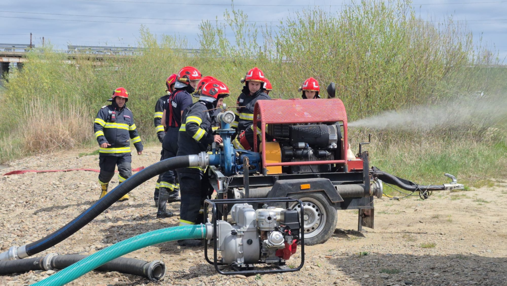 Au fost simulate acțiuni de evacuare a apei din zone afectate, protejarea gospodăriilor și bunurilor, precum și intervenții pentru limitarea extinderii fenomenului.