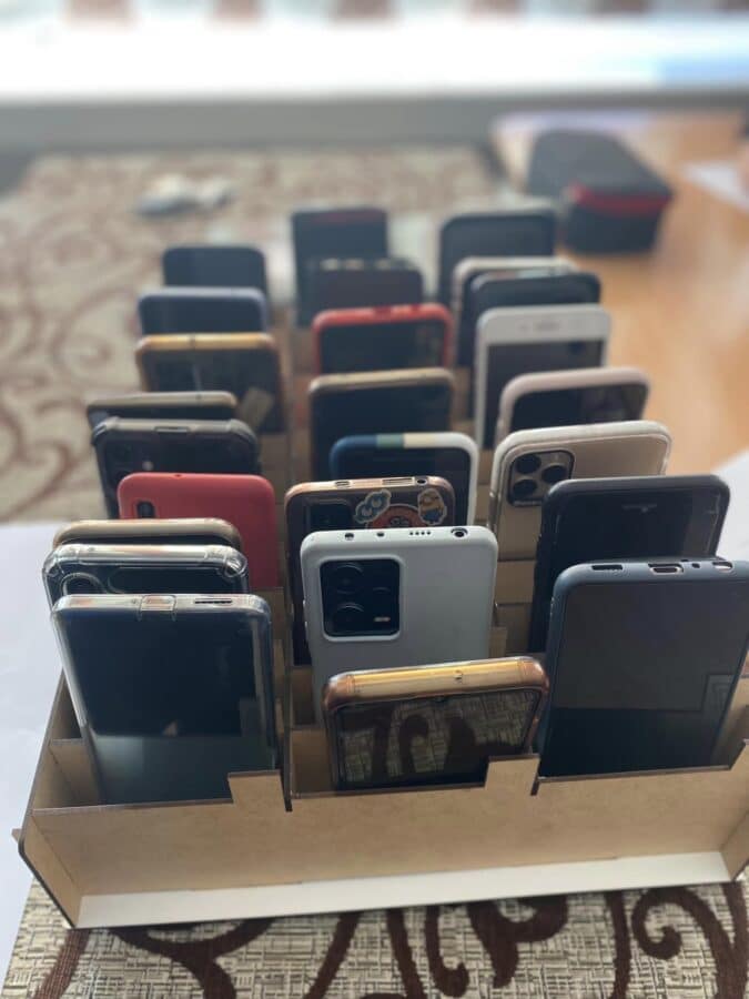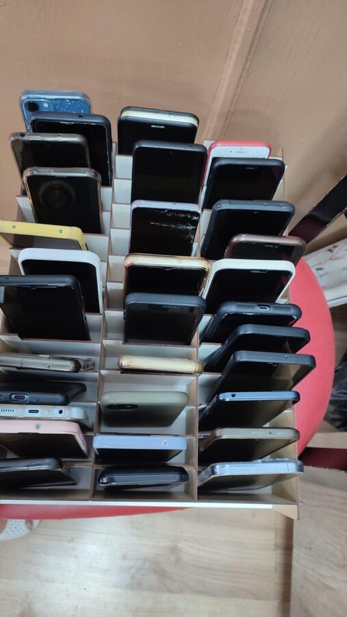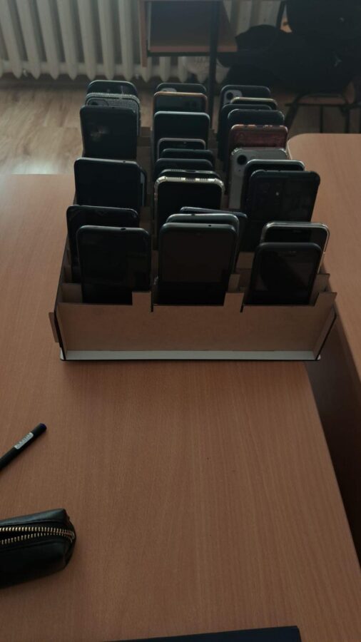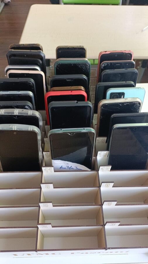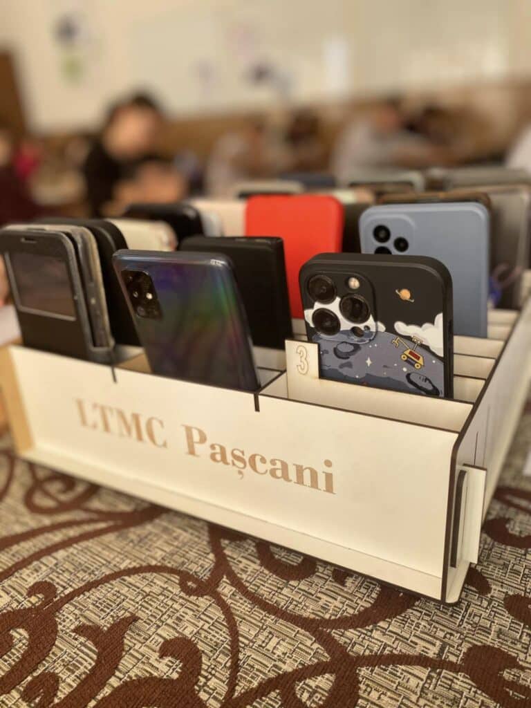 Astfel, atât în sălile de clasă, cât și în laboratoare, telefoanele mobile ale elevilor sunt păstrate în suporturi speciale, în fața clasei.