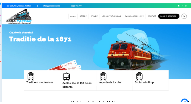 Aceste informații sunt postate pe noul site dedicat Gării Pașcani, lansat în urmă cu câteva zile. Aici puteti găsi noul mers al trenurilor, Gara Pașcani live, istoria Gării, dar și date de contact.
