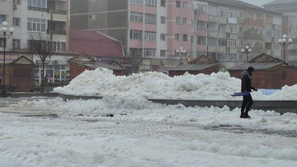 Gheața și zăpada rămase după demontarea patinoarului din zona Vale au fost îndepărtate în dimineața zilei de luni. O parte din acestea a fost depozitată în fântâna arteziană de pe Esplanadă, situație care a stârnit reacția consilierului local PSD Vlad Macovei.