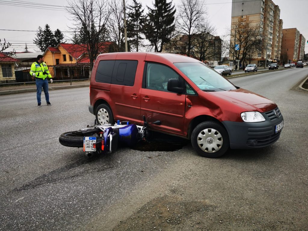 Accident de circulație la intrarea în Pașcani, zona supermarketului LIDL. Din primele informații, se pare că un tânăr aflat pe un motor a intrat într-un autoturism.