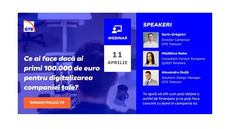 „Programul este o oportunitate unică. În ultimii doi ani, volumul de date a crescut atât de mult încât companiile nu-și mai permit strategii de business fără programe de digitalizare”, afirmă Sorin Drăghici, director comercial GTS Telecom.