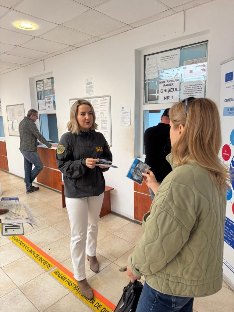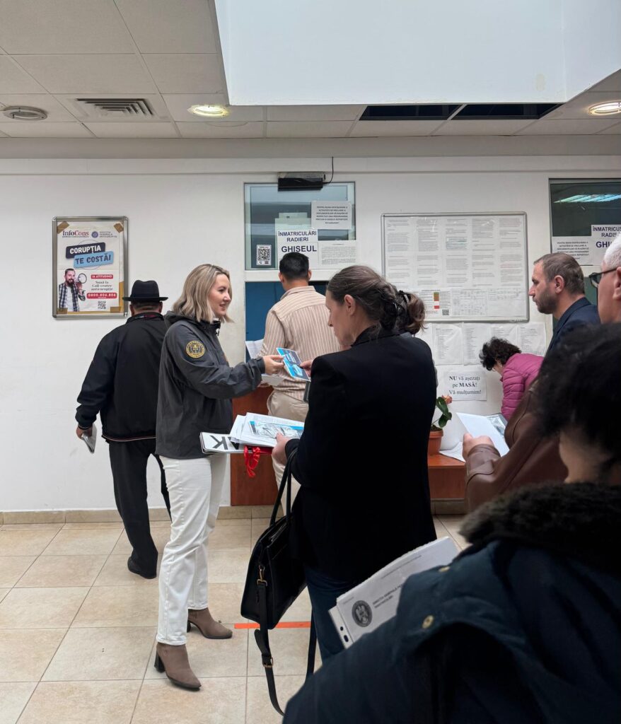 Ofițeri de poliție ai Direcției Generale Anticorupție – Serviciul Județean Anticorupție Iași au desfășurat, la data de 31.10.2025, o activitate de educație pentru promovarea integrității adresată cetățenilor prezenți la ghișeul Serviciului Regim Permise de Conducere și Înmatricularea Vehiculelor Iași, pentru eliberarea documentelor solicitate.
