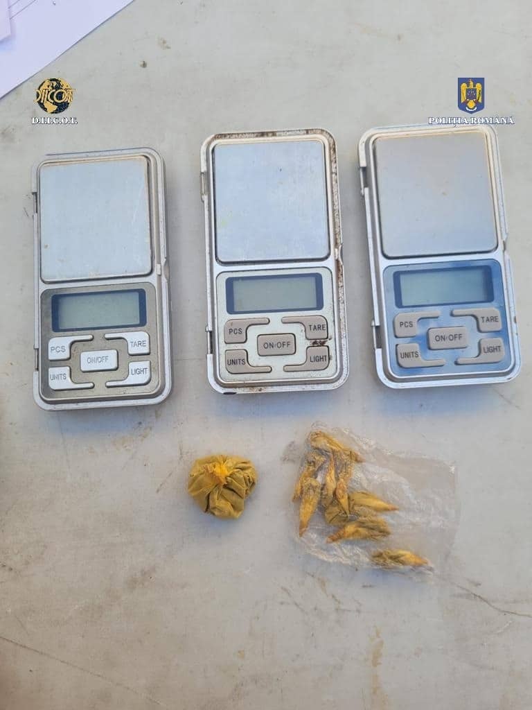 În urma percheziției domiciliare efectuate în municipiul București, au fost descoperite și ridicate 12 doze de heroină, ambalate în hârtie, mai multe cântare de precizie și o sumă de bani.