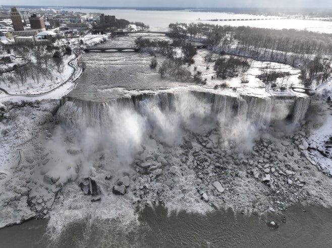 Cascada Niagara a înghețat parțial din cauza temperaturilor extrem de scăzute din Canada și Statele Unite. Imagini spectaculoase surprinse din dronă au fost publicate pe rețelele sociale. De asemenea, peisajul de poveste a fost surprins și în fotografii.