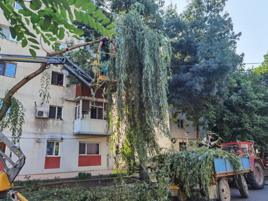 Angajații Serviciului de Gospodărie Comunală și Locativă din cadrul Primăriei Pașcani au tăiat astăzi salcia de pe Aleea 22 Decembrie, care amenința să cadă peste mașini și trecători.