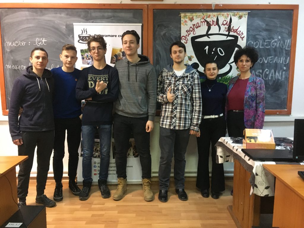 “Atunci când am promovat clubul de programare am fost surprinși de numărul mare de elevi ce s-au înscris. Am format mai multe grupe, ședințele derulându-se sâmbăta de la orele 10 și de la 13 în laboratorul de informatică al Colegiului Național M. Sadoveanu. Cei ce pot participa în timpul săptămânii, vin vinerea de la ora 12.30. În perioada octombrie-decembrie 2019 am dezvoltat cu predilecție proiecte realizate cu plăcuțe de micro:bit, dar în semestrul al II-lea vom începe să realizăm și proiecte cu plăcuțe de Arduino. Elevii voluntari ce ajută la activitățile clubului sunt elevi din clasele a XI-a și a XII-a de la Colegiul Național “M. Sadoveanu” și de la Liceul Teoretic “Miron Costin”, de la specializarea matematică-informatică elevi ce au obținut rezultate notabile la concursurile informatice.”, a declarat coordonatorul clubului, prof. Coșniță Emilia-Felicia.