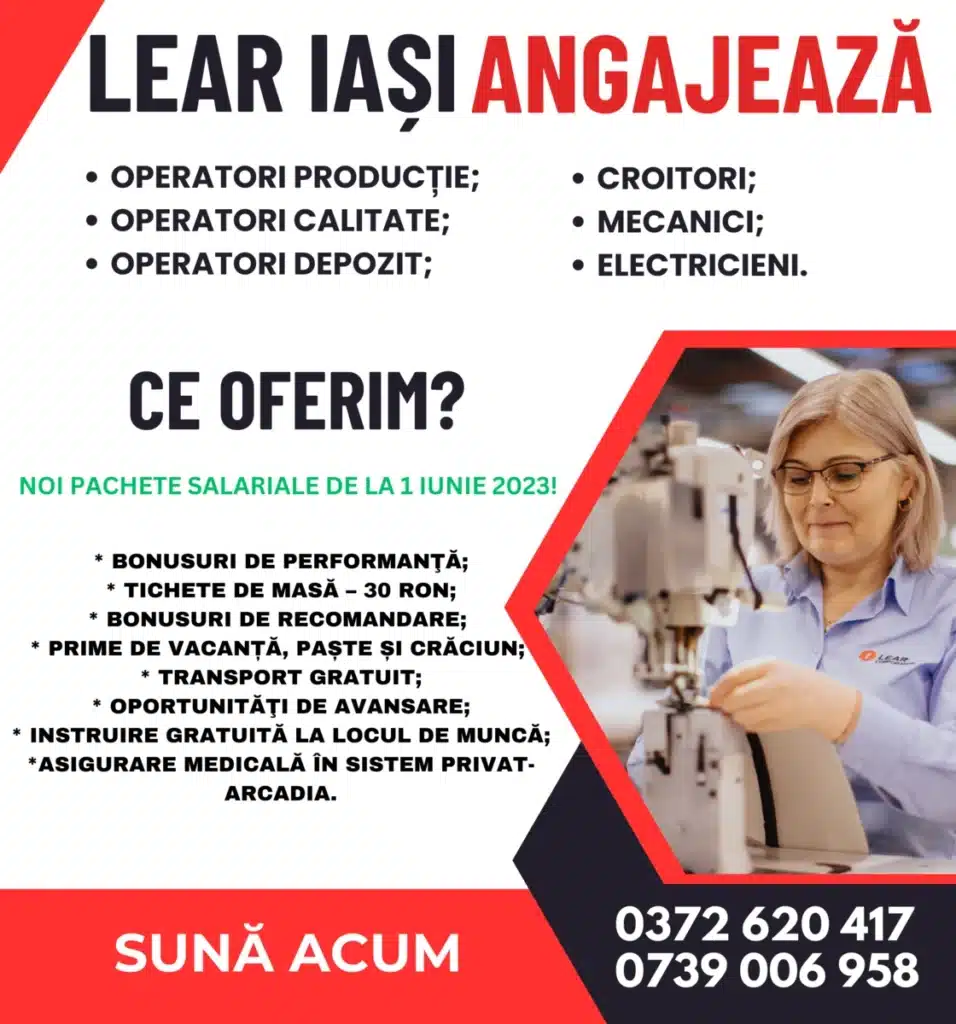 Lear Iași angajează CROITORI, cu și fără experiență! Vino în echipa noastră de producție huse auto și poți începe imediat!