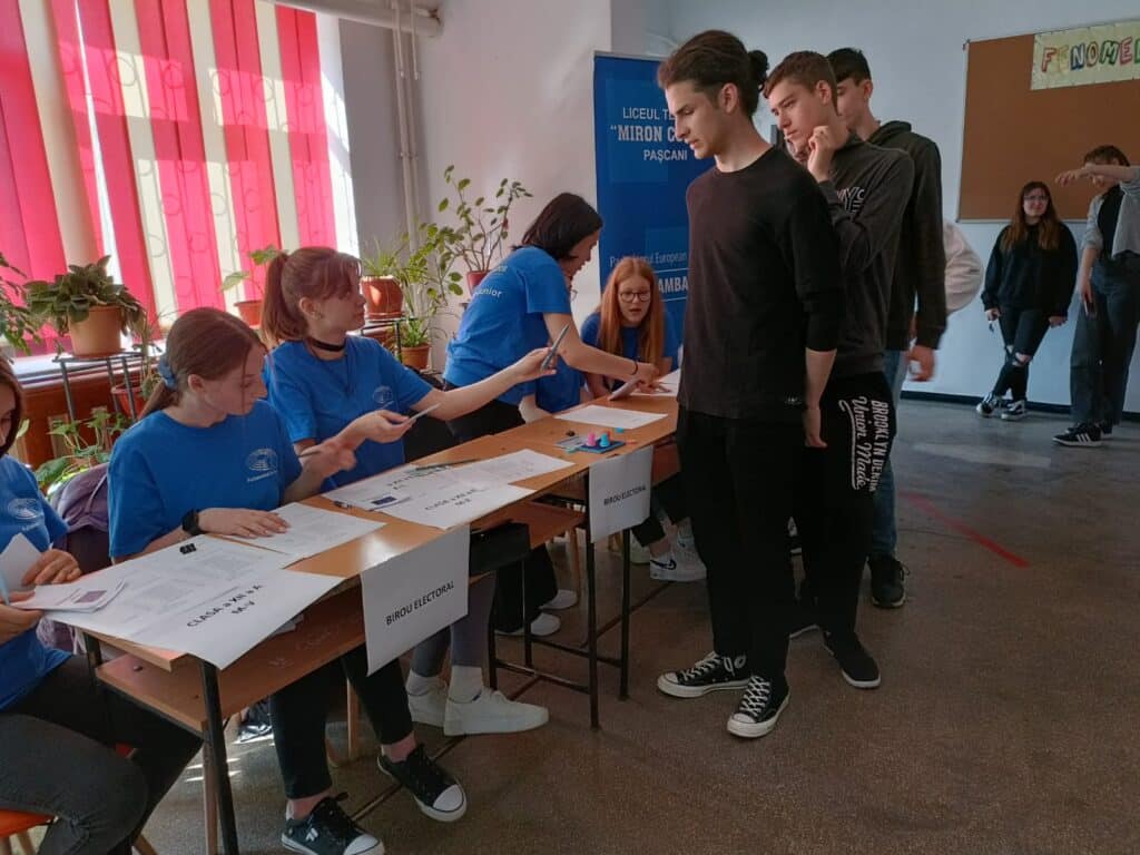 În perioada 17 aprilie – 5 mai 2023, la Liceul Teoretic “Miron Costin” din Pașcani, s-a desfășurat activitatea “Vocea ta în Europa”, inițiată de ambasadorii juniori, activitate care a presupus implicarea elevilor din clasele IX-XI în simularea unor alegeri europarlamentare. În această perioadă, organizați pe echipe, liceenii s-au documentat,