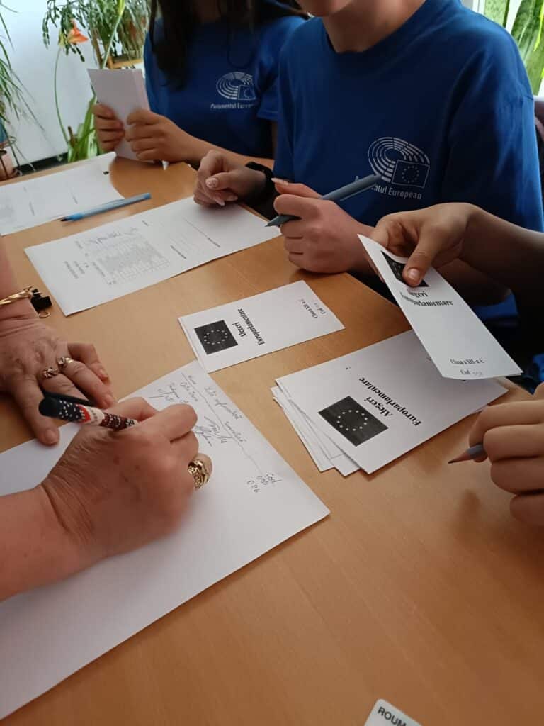 și-au prezentat claselor cu elevi majori programele electorale, au ținut discursuri, au votat sau au fost votați. La vot au participat elevii claselor terminale care au împlinit vârsta de 18 ani, fapt ce le-a permis observarea procesului electoral. In același context, ambasadorii juniori au prezentat informații despre activitatea Parlamentului European, despre modalitatea de organizare a alegerilor europarlamentare, subliniind totodată importanța exercitării dreptului de vot de către toți cetățenii europeni.