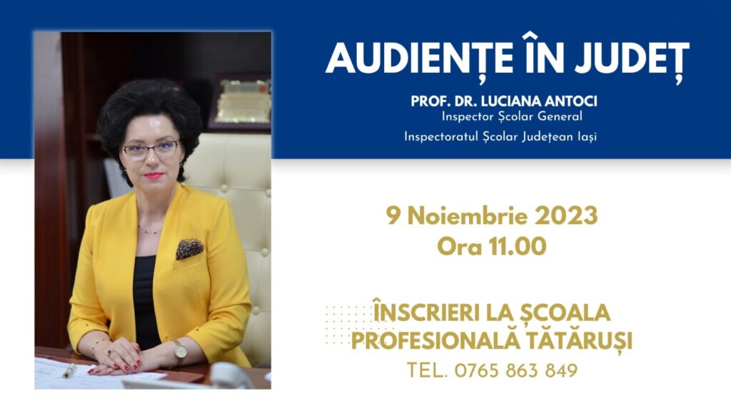 Înscrierile în audiență pot fi făcute la unitatea de învățământ care va găzdui întâlnirile de lucru, tel. 0765 863 849″ – Luciana Antoci, inspector scolar general ISJ Iasi.