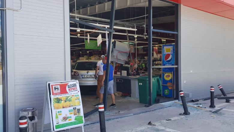 Șoferița, în vârstă de 77 de ani, a intrat cu tot cu mașină prin geamul supermarketului. Femeia ar fi încercat să parcheze în fața magazinului.