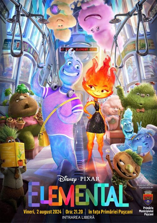 Un nou film va fi proiectat în acest final de săptămână în fața Primăriei Pașcani. Astăzi, 2 august, de la ora 21:30 cei mici și nu numai sunt invitați pentru a viziona animația „Elemental” (2023), produsă de Disney-Pixar. Premiera filmului a avut loc pe 16 iunie 2023.