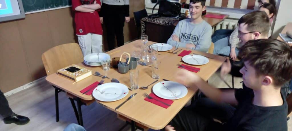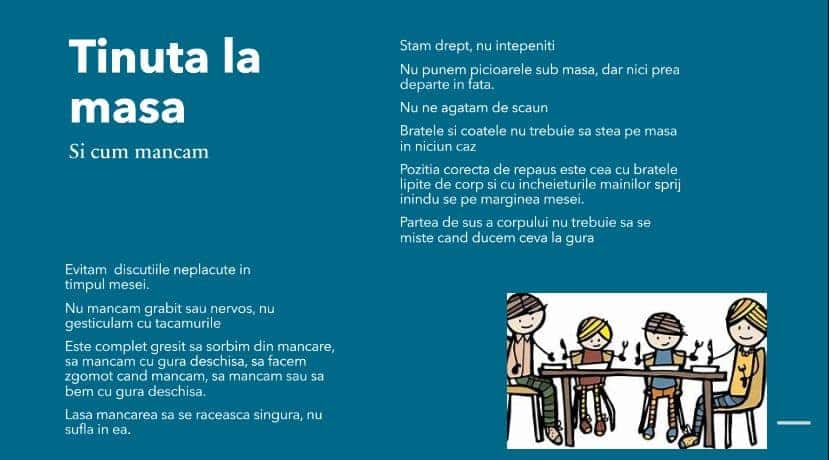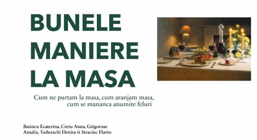 Elevii clasei a IX-a E de la Liceul Teoretic “Miron Costin” Pașcani au folosit ora de dirigenție pentru a invata din Codul bunelor maniere Cum luăm masa cu sau fără invitați, acasă sau în oraș.