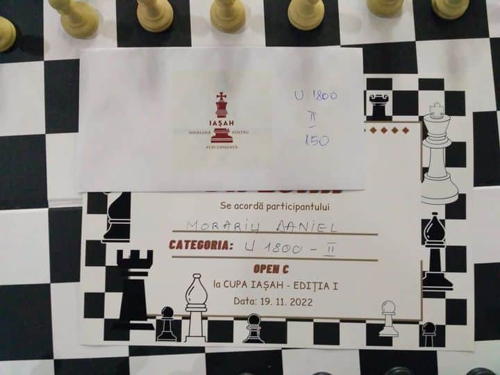 La Cupa IASAH Open C Blitz, competitie la care au participat in paralel fratii Morariu, dupa 9 runde, cu cele 6.5 puncte, Morariu Daniel s-a clasat pe locul II la categoria de Elo <1800.
