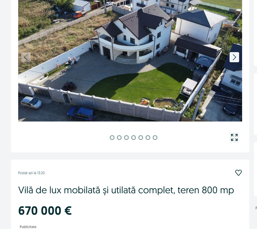 Un alt anunț imobiliar, de data asta de vânzare a unei vile din Pașcani, arată că așeptările celor care au proprietăți imbiliare sunt foarte mari. Astfel, pentru o vilă de 570 de metri pătrați cu un teren de 800 de metri pătrați un pășcănean solicită 670.000 de euro, adică 3.350.000 de lei.