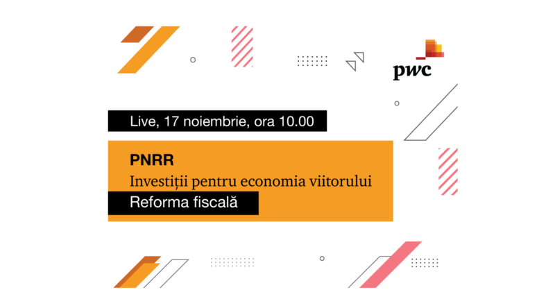 În ce va consta această reformă, ce modificări ale Codului fiscal sunt avute în vedere, care va fi impactul pentru contribuabilii persoane fizice și juridice și cum se va schimba administrația fiscală sunt temele de dezbatere ale conferinței PwC România ”PNRR-Investiții pentru economia viitorului. Reforma Fiscală”, care va avea loc joi, 17 noiembrie, de la ora 10.00, la care vor participa: Ovidiu Lucian Heiuș, președinte Agenția Națională de Administrare Fiscală, Alin Chitu, secretar de stat Ministerul Finanțelor Publice, Daniel Anghel, Partener, Liderul serviciilor fiscale și juridice PwC România, Andreea Mitiriță, Partener PwC România, Ionuț Simion, Part