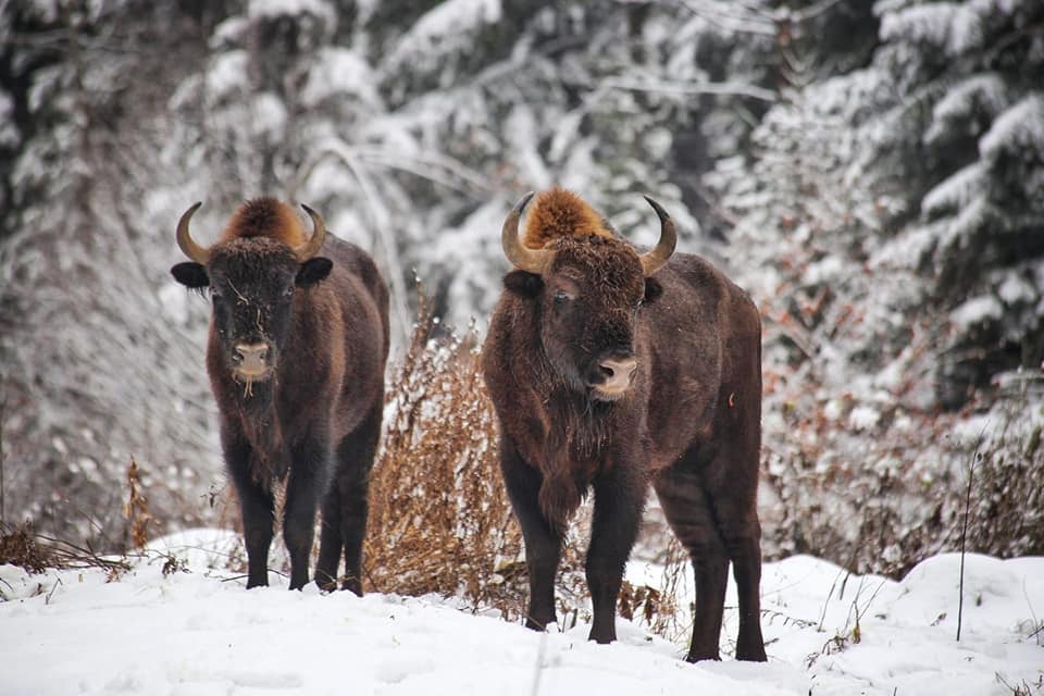 Imagini cu zimbrii în libertate din Parcul Natural Vânatori Neamț au devenit virale.