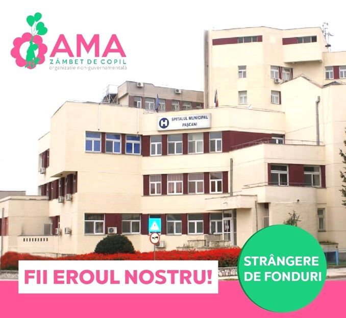 Asociația ”AMA zâmbet de copil” din Iași a inițiat o campanie de strângere de fonduri pentru a veni în sprijinul Secției de Pediatrie din cadrul Spitalului Municipal Pașcani. Pentru început, se dorește achiziționarea unei rampe de rezervă și oxigenator pentru sala de operație, echipamente în valoare de 32.205 lei. O creștere a investițiilor pentru dotarea unității medicale cu aparatura va îmbunătăți serviciile oferite copiilor.