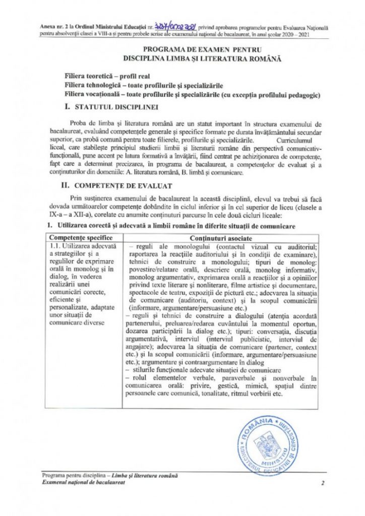 Programa nouă pentru Limba și Literatura Română la Bac 2021 poate fi consultată și pe www.edu.ro/bacalaureat.