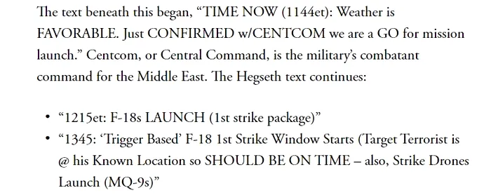 “Vremea este favorabilă, tocmai s-a confirmat de către Comandamentul Central american (CENTCOM) că avem aprobarea pentru lansarea misiunii”, arată un mesaj atribuit lui Pete Hegseth.