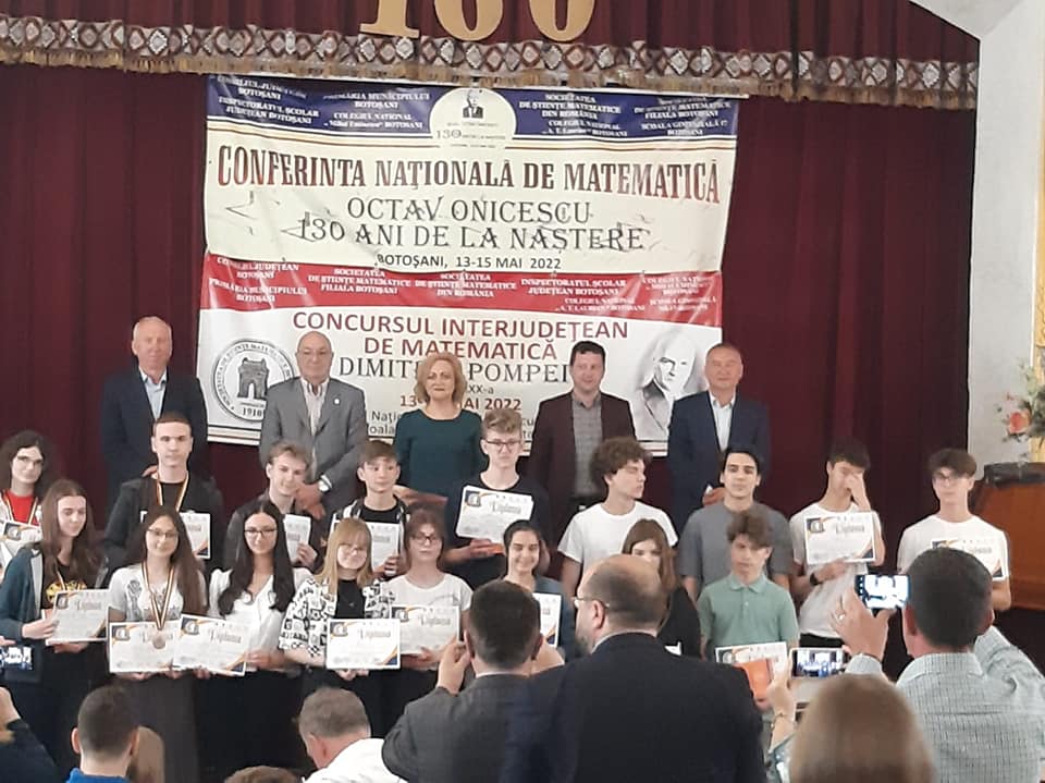 „În perioada 13-15 mai 2022, s-a desfașurat în municipiul Botoșani ediția a XX-a a prestigiosului Concurs Interjudețean de Matematică „Dimitrie Pompeiu” sub patronajul Societății de Științe Matematice din România, directorul concursului fiind și președintele societății, profesorul universitar Radu Gologan.Au participat aproximativ 500 de elevi din clasele 3- 11 de la școli și colegii de prestigiu din toate județele Moldovei, dar și din câteva județe ardelene. Nivelul concursului este ridicat, similar etapei județene a Olimpiadei de matematica. Subiectele conțin 3 probleme, una selectată din revista Gazeta Matematică, dar și o problemă suplimentară de perspicacitate care rezolvată corect aduce elevului un Premiu Special. Lotul Colegiului „Mihail Sadoveanu”, pastrând tradiția rezultatelor de excepție obținute la edițiile precedente, s-a clasat pe poziții fruntașe”, este postat pe pagina de Facebook a Colegiului „Sadoveanu”.