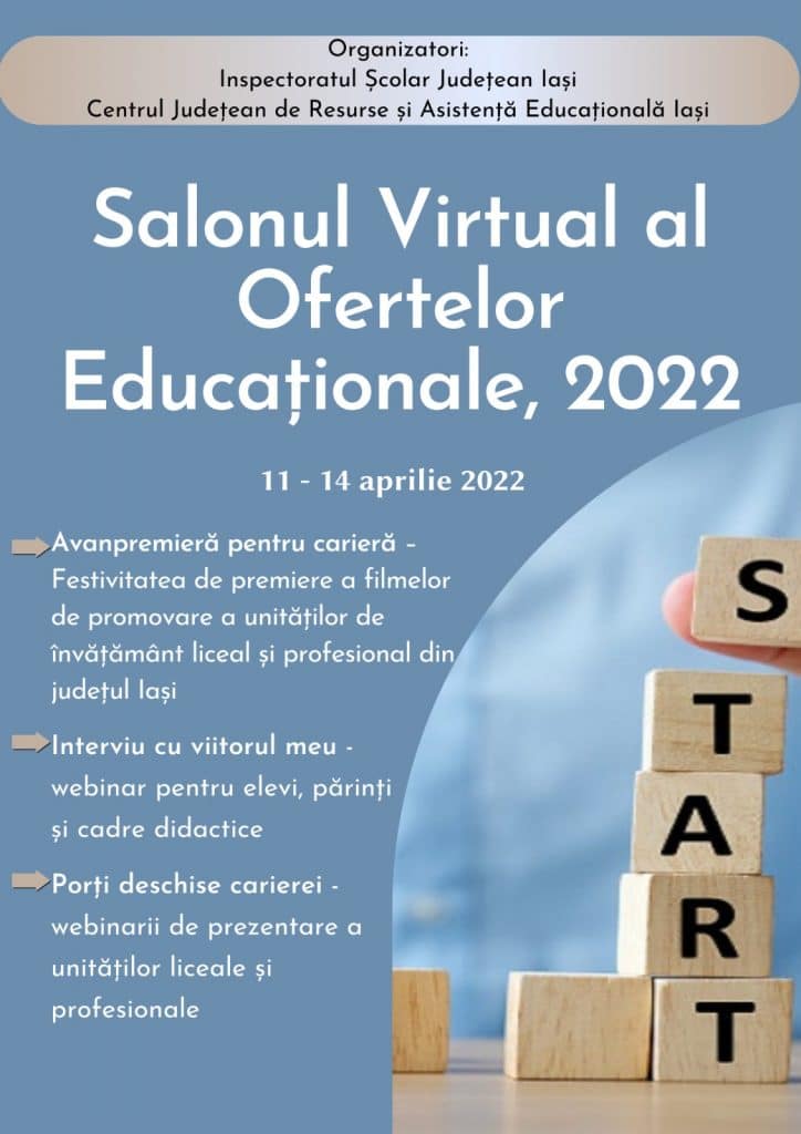 Salonul Ofertelor Educaţionale își deschide în format virtual, porțile, în perioada 11- 14 aprilie 2022, preluând în mod firesc limitările perioadei pe care o traversăm precum și oportunitățile tehnologice care accesibilizează evenimentul pentru un număr considerabil mai mare de elevi.
