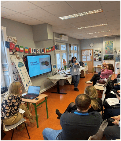 La activitate au participat cinci cadre didactice ale școlii, alături de cadre didactice din școlile partenere din Italia, Portugalia, Turcia și Polonia. În cadrul acestei întâlniris-a discutat despre beneficiile și efectele negative ale expunerii prelungite la ecrane asupra copiilor cu cerințe educative speciale, dar și despre dezvoltarea comunicării acestei categorii de elevi cu ajutorul mijloacelor multimedia, platforme educaționale și aplicații digitale.