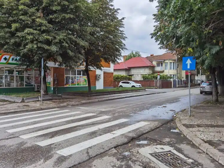 Acolo există un spațiu verde, iar soluția propusă este realizarea unui trotuar de un metru lățime, folosind pavele înierbate, astfel încât să nu fie modificat spațiul verde, dar să se asigure o cale de acces pentru pietoni.