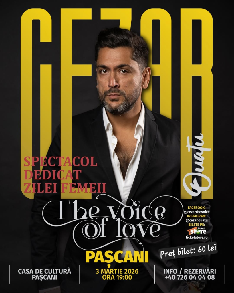 Marți, 3 martie 2026, de la ora 19:00, Casa de Cultură „Mihail Sadoveanu” din Pașcani va găzdui un spectacol de gală dedicat Zilei Internaționale a Femeii. Evenimentul va fi susținut de Cezar Oatu împreună cu band-ul său și va include interpretări ale unor piese muzicale nemuritoare, menite să celebreze feminitatea și muzica de calitate.