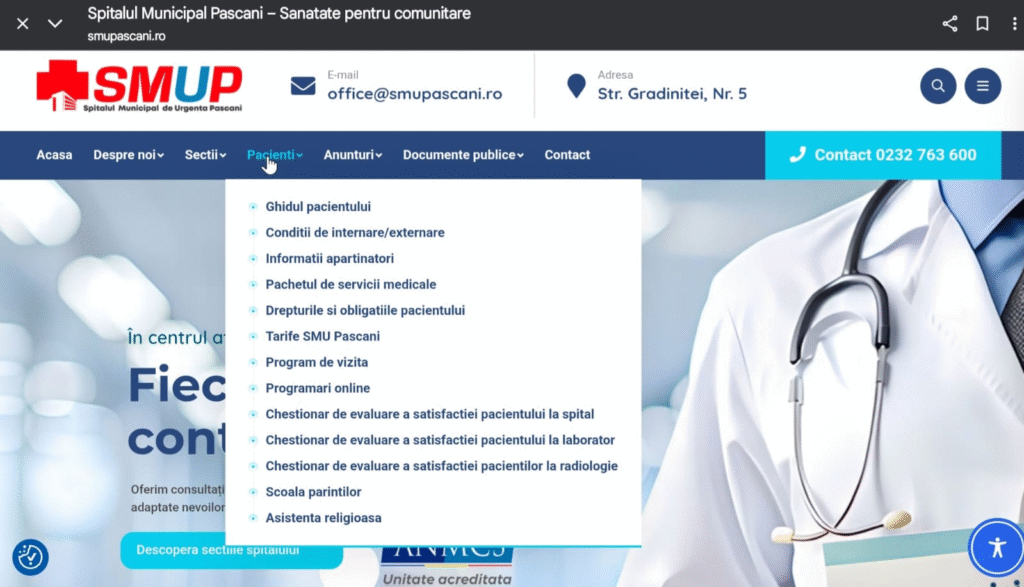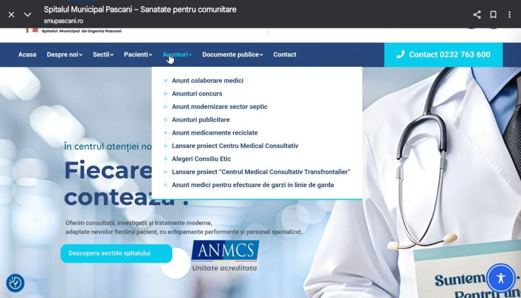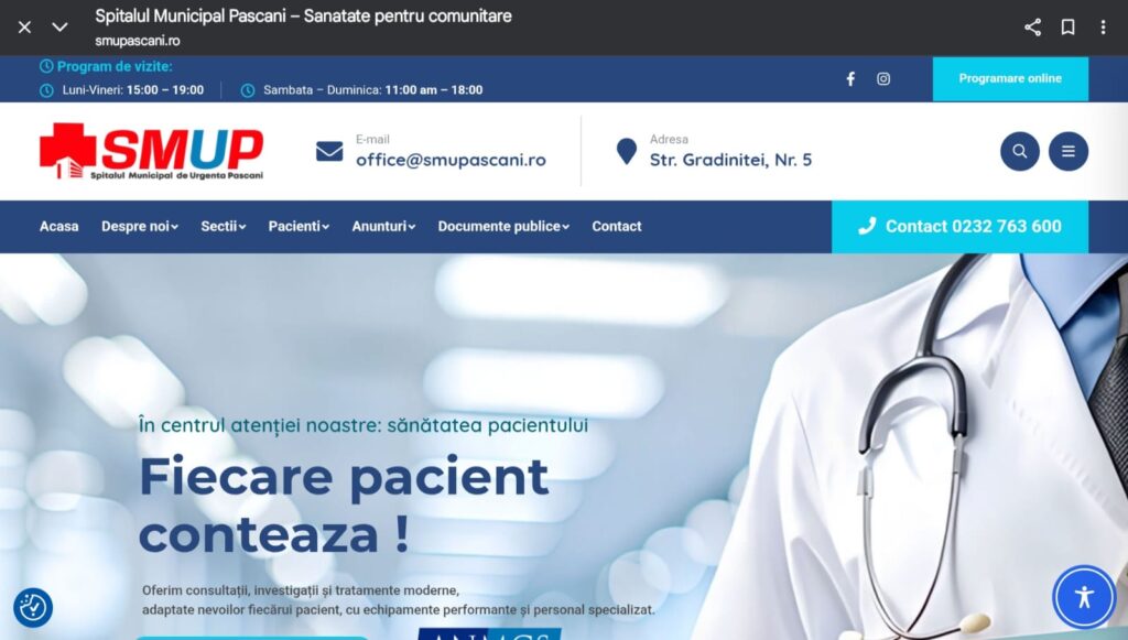 Spitalul Municipal de Urgență Pașcani a pus la dispoziția publicului o nouă versiune a site-ului oficial, realizată pentru a răspunde mai eficient nevoilor pacienților și pentru a facilita accesul rapid la informații medicale esențiale.