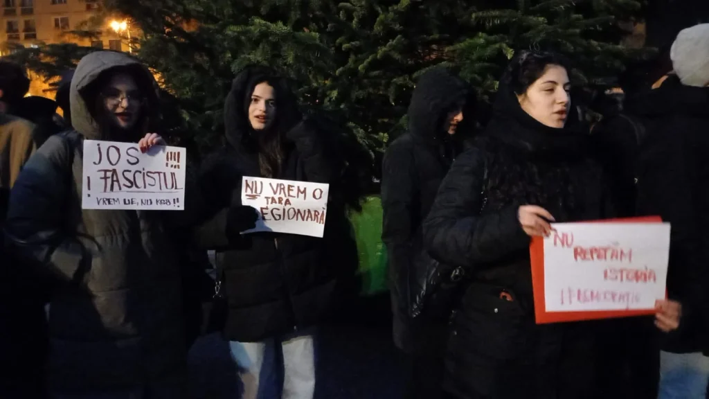 În jur de 300 de tineri s-au strâns în Piața Uniri din Iași, la un protest față de Călin Georgescu, candidatul la președinție care a ieşit pe primul loc după turul întâi al alegerilor. De ce s-au adunat în centrul Iașului? Un tânăr participant la protest explică: „Ca să opresc un parcurs antidemocratic al României. Să nu se repete scenariul care s-a întâmplat în 1937 cu un partid legionar care a ajuns să ocupe poziția a treia din preferințele oamenilor. Și în același timp, cred că am venit pentru ca România să-și păstreze parcursul european. Dacă se poate să și-l întărească”.