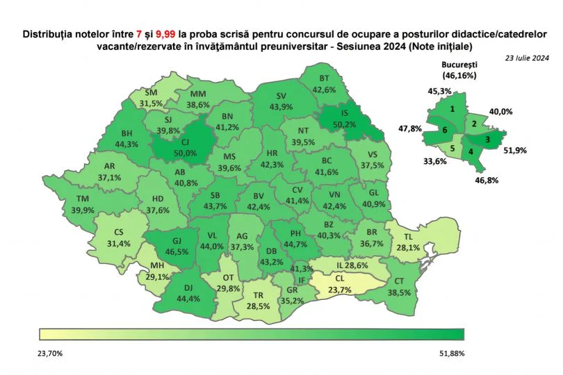 După afișarea rezultatelor la concursul de titularizare 2024, Iașul s-a clasat pe primul loc, cu cel mai mare procent (50,2 %) al notelor din intervalul 7.00 – 10.00, obținut de dascălii ieșeni.