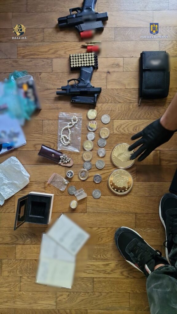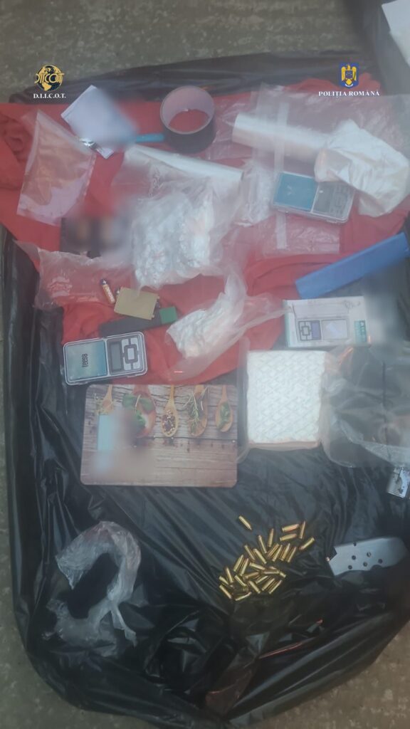 În urma a 5 percheziții domiciliare și 7 percheziții auto efectuate, de către polițiști, la data de 22 septembrie 2025, au fost descoperite și ridicate aproximativ 800 de grame de cocaină (un calup și 128 de doze porționate în cantități de circa un gram, 5 grame, 10 grame, 30 și 100 de grame), 6 cântare de mare precizie, 158.200 de euro, 539.650 de lei, 1.200 de dolari, 590 de lire, un pistol de calibrul 9 mm. încărcat cu 3 cartușe, un pistol de calibrul 7,65 mm. încărcat cu 8 cartușe, ambele deținute ilegal, alte 88 elemente de muniție cu diferite calibre, 28 de pietre cu aspect asemănător diamantelor (în curs de expertizare), două ceasuri de lux, mai multe monede de colecție și obiecte metalice (argintii și aurii), unități de stocare a datelor, precum și alte mijloace de probă.