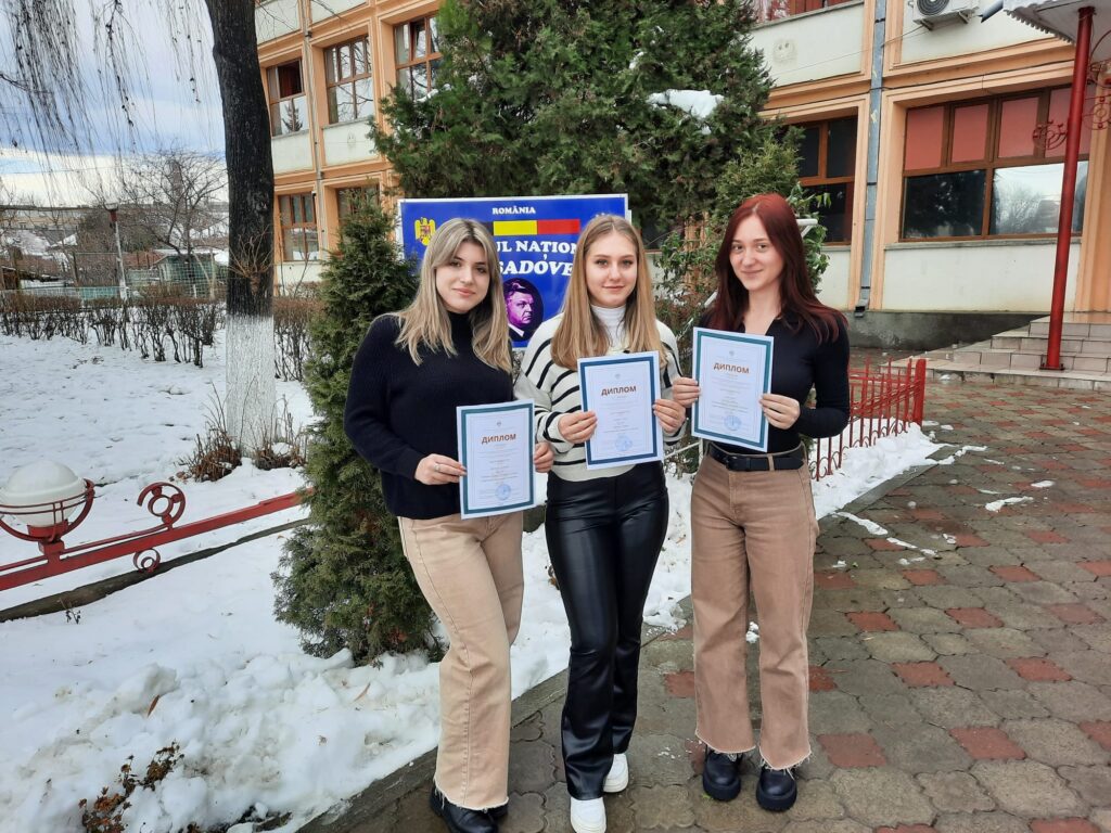 Cătălina Gustei(clasa a X-a E) a obținut Premiul I, Ana Cernețchi(Clasa a X-a A)- Premiul I, iar Iana Creciun(clasa a XI-a A) a obținut Premiul al III-lea.