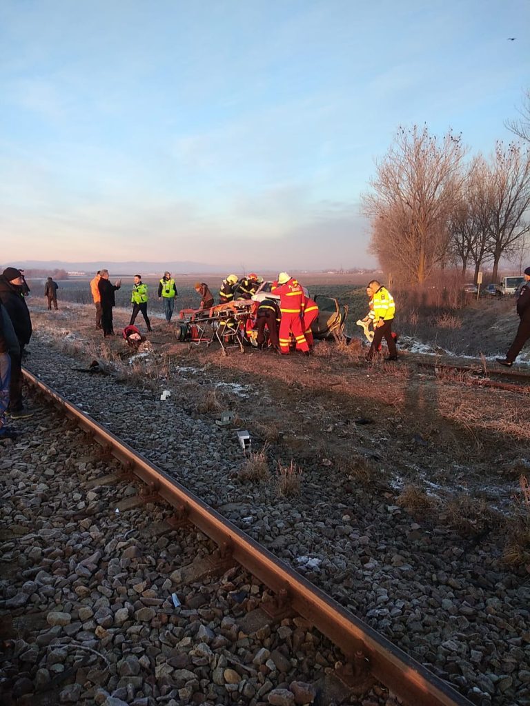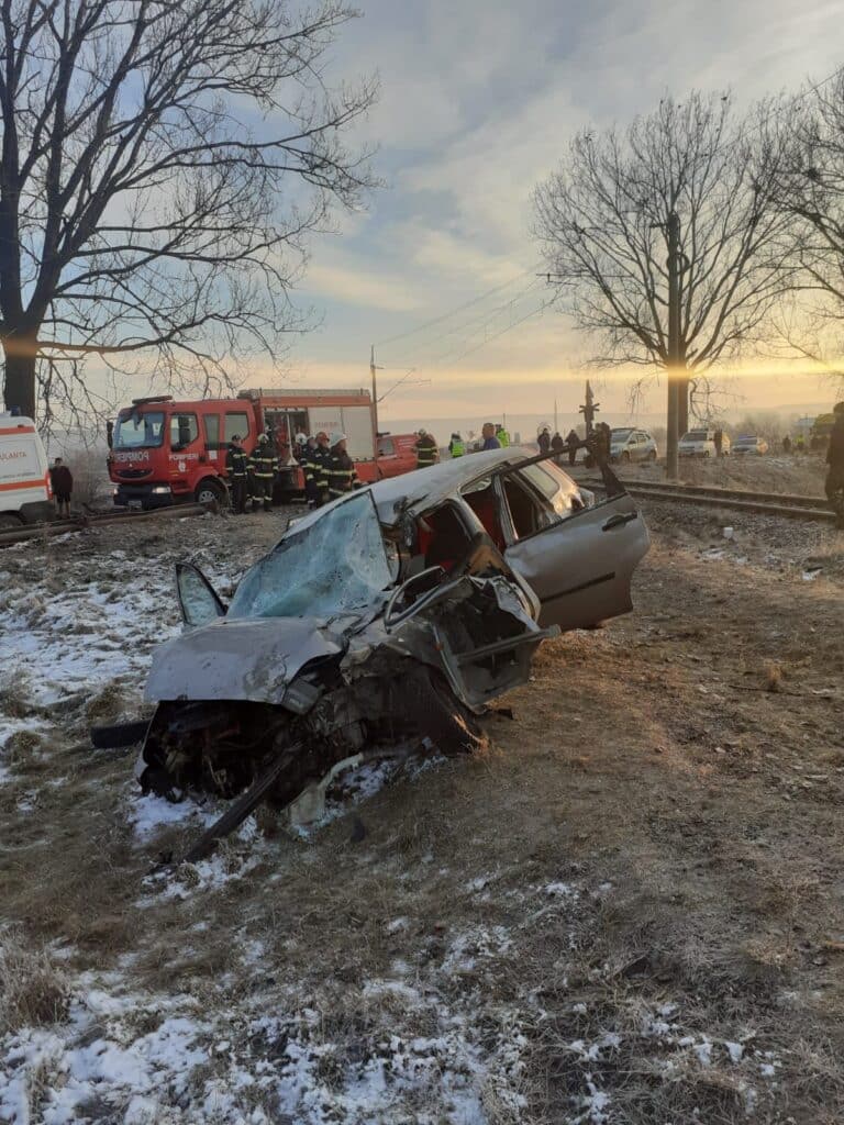 În această dimineață, un autoturism a fost lovit de tren în comuna Timișești. În autoturism se aflau două persoane (mamă și copil).