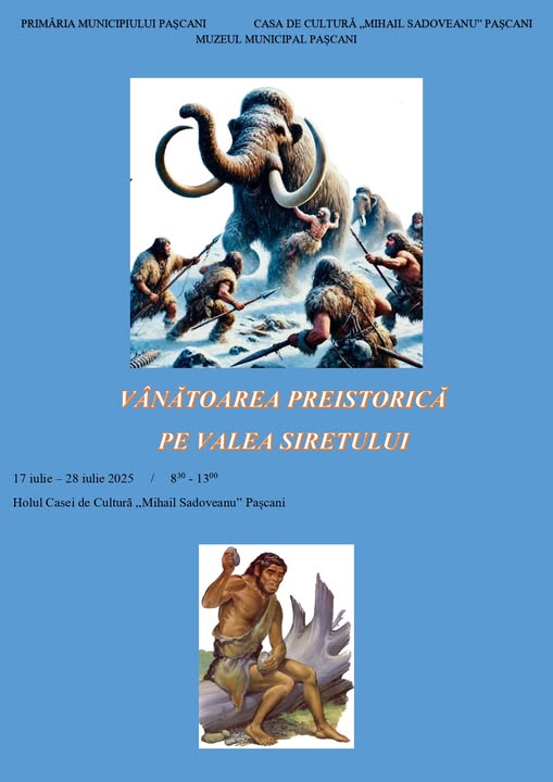 Vânătoarea a fost o activitate esențială pentru omenire încă din cele mai vechi timpuri, iar muzeul din Pașcani, împreună cu Casa de Cultură, vă invită să descoperiți această lume fascinantă în cadrul expoziției „Vânătoarea preistorică pe valea Siretului”, ce se va desfășura între 17 și 25 iulie 2025, între orele 8:30-13:00.