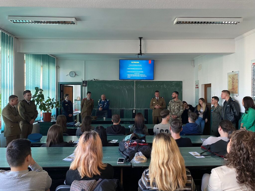 Elevilor le-au fost prezentate importanța Zilei Armatei României, misiunile desfășurate de militari în țară și în teatrele de operații, precum și informații privind cariera militară și oferta educațională a Ministerului Apărării Naționale.